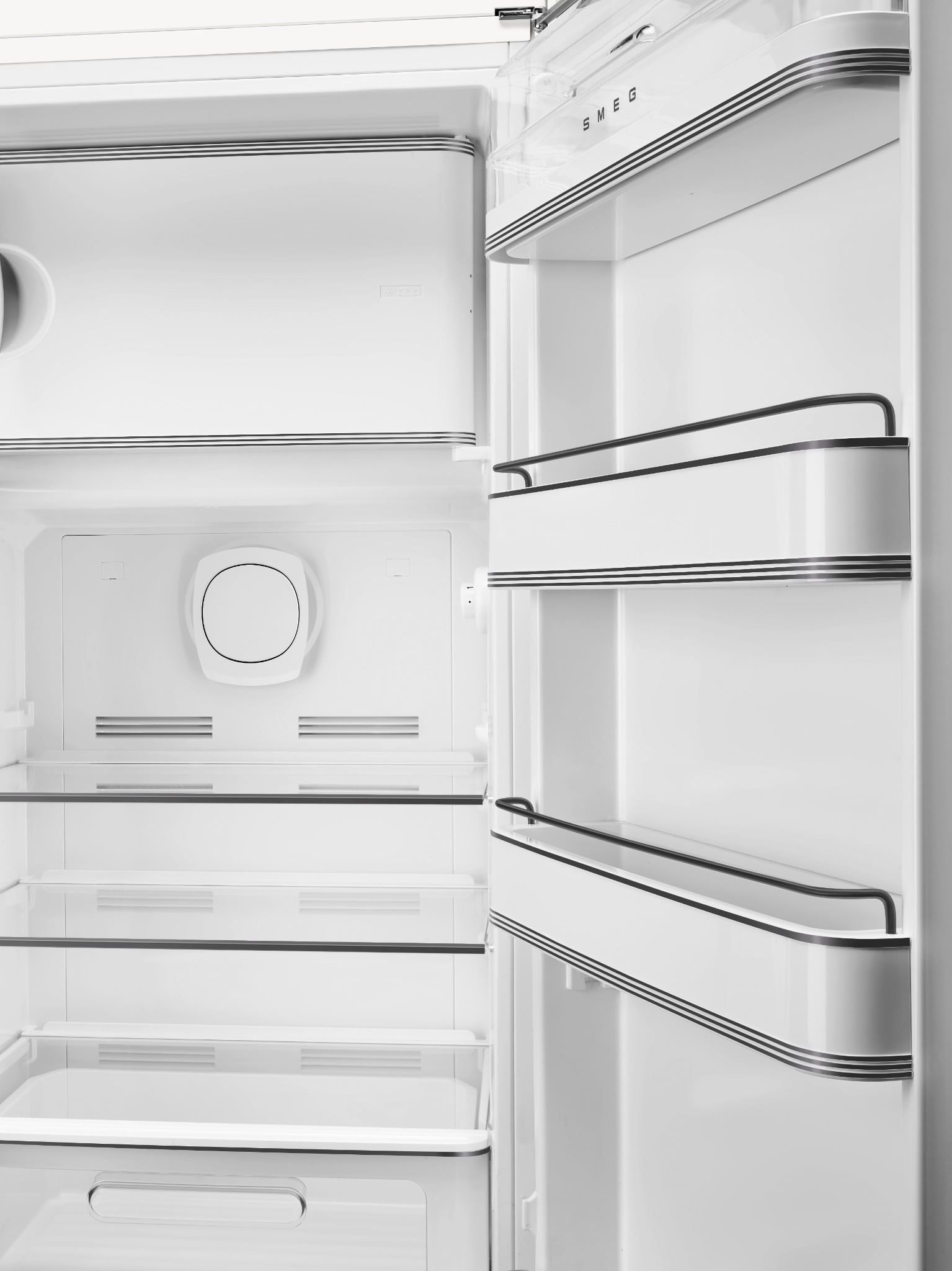 Trong bộ sưu tập Porsche x SMEG Carrara White & Shade Collection, từng chi tiết đều được chế tác để tạo dấu ấn. Tay nắm đen mờ và logo SMEG biểu tượng tạo nên độ tương phản tinh tế trên nền trắng thanh thoát, thổi vào thiết kế cá tính và nét sang trọng hiện đại.