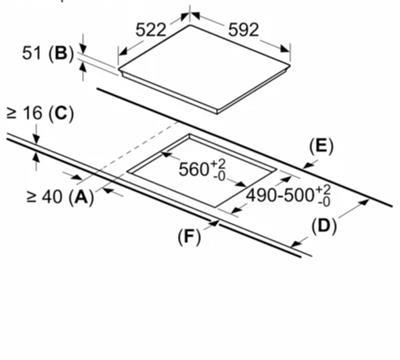 + Vùng nấu sau bên phải: 1 x Ø 145 mm, 1.4 KW (có thể tăng đến 2.2 KW)