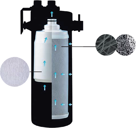 Nước được thẩm thấu từ ngoài thành ống của các sợi rỗng bao gồm hàng triệu lỗ lọc với kích thước siêu nhỏ từ 0.01 đến 0.1micromet vào bên trong sợi rỗng. Các tạp chất có kích thước lớn hơn 0.1mm như tảo, vi sinh vật, độ đục, vi khuẩn, rỉ sét, nấm mốc, các thành phần kim loại trong nước được giữ lại bên ngoài màng lọc. Chỉ còn nước sạch và khoáng chất sau khi lọc.